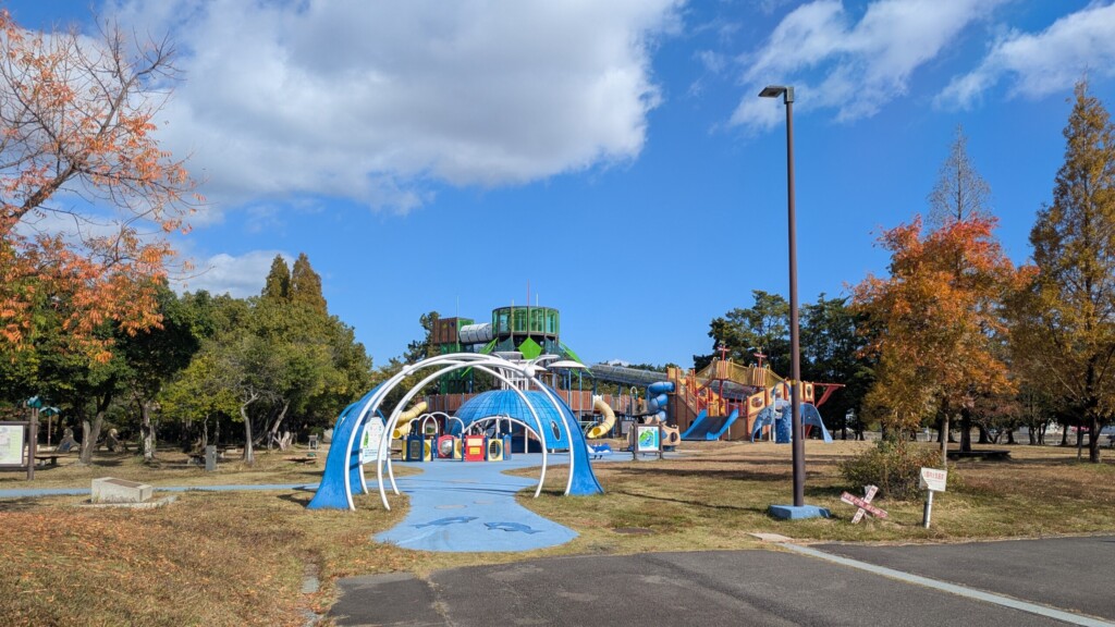 四日市ドームから徒歩圏内の霞ヶ浦緑地公園には、大型遊具や芝生エリアが広がる「霞ゆめくじら」と「ロングビーチ公園」があります。