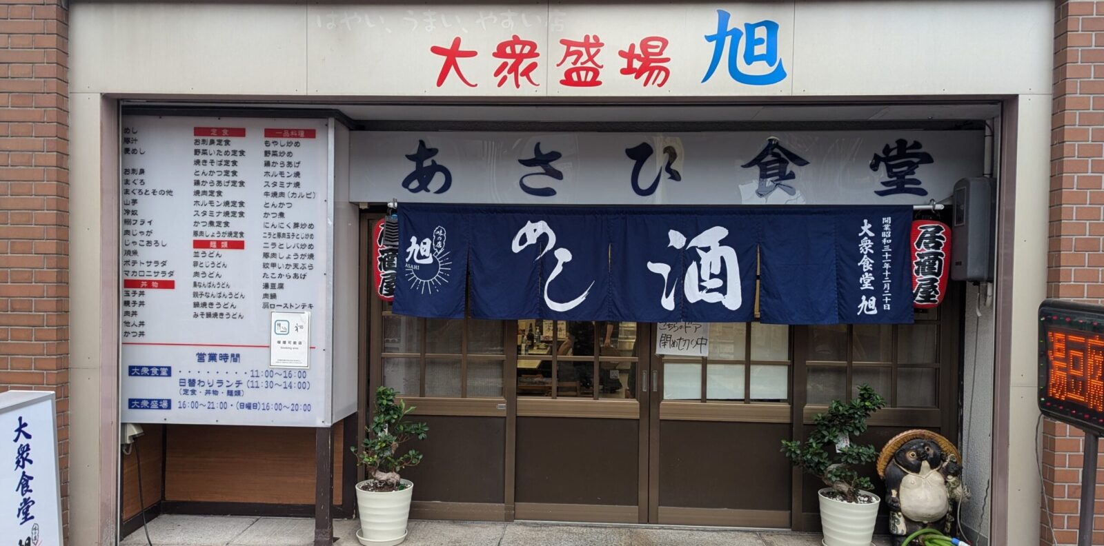昭和31年創業の「あさひ食堂」は、昼は食堂、夜は居酒屋として営業しています。